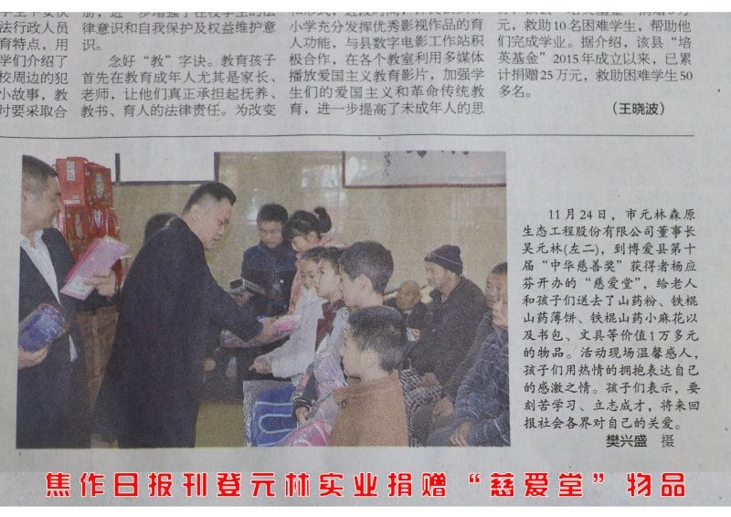 焦作日報刊登元林實業(yè)捐贈“慈愛堂”物品